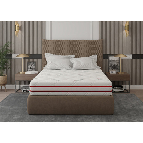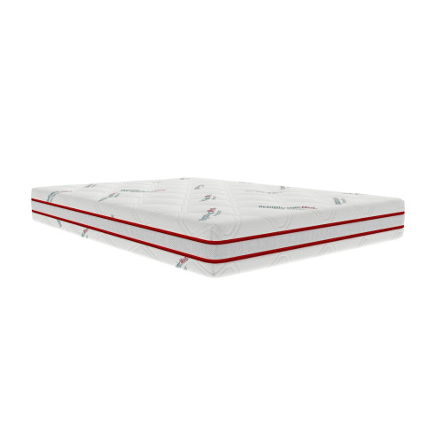 - Stratul de bază din spumă poliuretanică de densitate 23 Kg/m³ și duritate 40 oferă un suport ferm, ideal pentru o aliniere corectă a coloanei vertebrale și pentru reducerea disconfortului muscular. Salteaua este recomandată pentru persoane de până la 100 kg.
