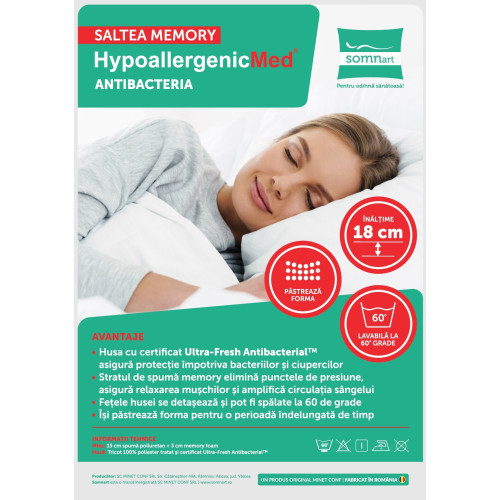 Salteaua Memory HypoallergenicMed Antibacteria oferă un echilibru ideal între confort, suport ortopedic și protecție antibacteriană, fiind o alegere excelentă pentru întreaga familie, inclusiv pentru cei cu alergii.