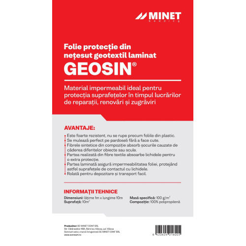 Folie Protectie Netesut Laminat Geosin Pentru Protectia Suprafetelor La Lucrarile De Reparatii, Latime 1M X Lungime 10M, Pentru Renovari, Zugraviri