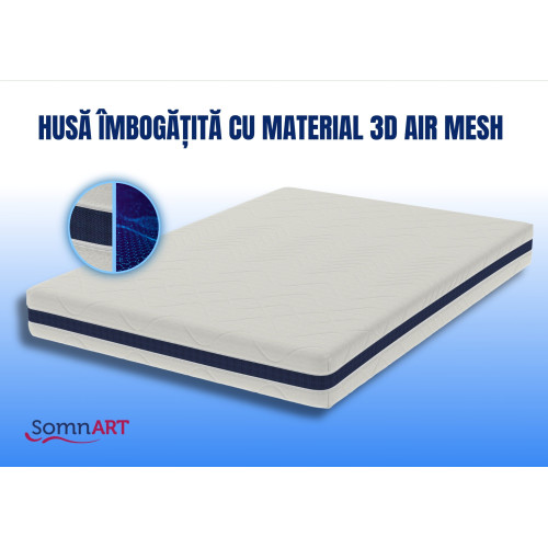 - 3 cm de spumă cu memorie (densitate 50 kg/m³, duritate 15).