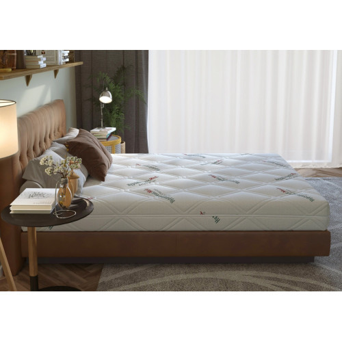 - Nucleul din spumă poliuretanică High Resilience (20 cm, densitate 23 kg/m³) oferă suport ortopedic, susținând corect coloana vertebrală și relaxând musculatura.