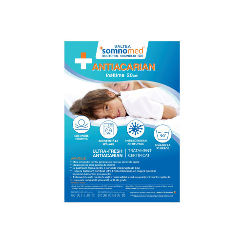 Saltea Somnomed Antiacaria pentru alergici, husa detasabila si lavabila cu tratament antiacarian 180x200