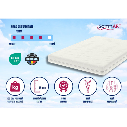 - Fabricată pentru o utilizare îndelungată, salteaua își păstrează nivelul de confort și suport de-a lungul anilor, fiind o alegere excelentă pentru cei care doresc o investiție pe termen lung.