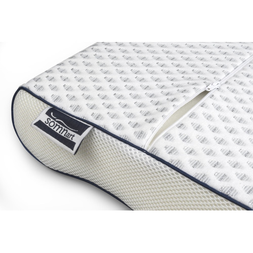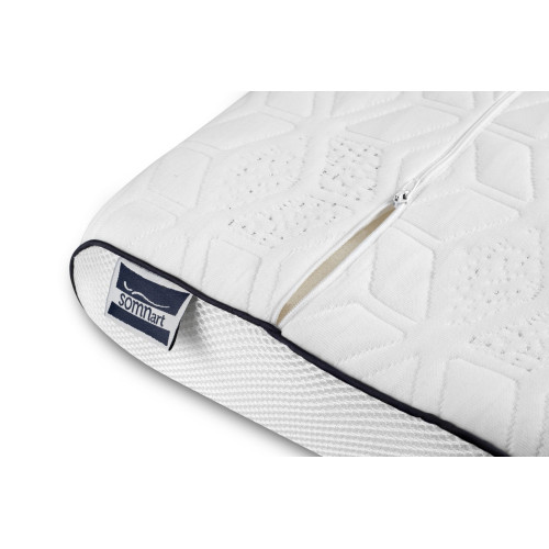 Miezul pernei, realizat din memory foam, are o forma anatomica ce o face ideala pentru toate pozitiile de dormit, fiind deosebit de benefica pentru persoanele care se confrunta cu dureri de ceafa si coloana.
