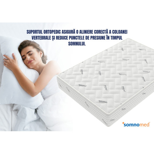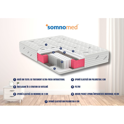 Saltea Cu Arcuri Pocket Somnomed Comfort Fit Horeca 140X200, Înălțime 30 Cm, Spumă Cu Memorie, Husa Tratament Antiacarieni, Fermitate Mediu-Tare