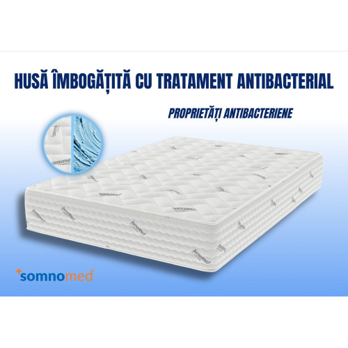 - Husa saltelei este tratată cu antibacterian Ultra-Fresh, care previne formarea acarienilor și protejează împotriva alergiilor cauzate de aceștia, oferind un mediu curat și sănătos pentru un somn fără griji.
