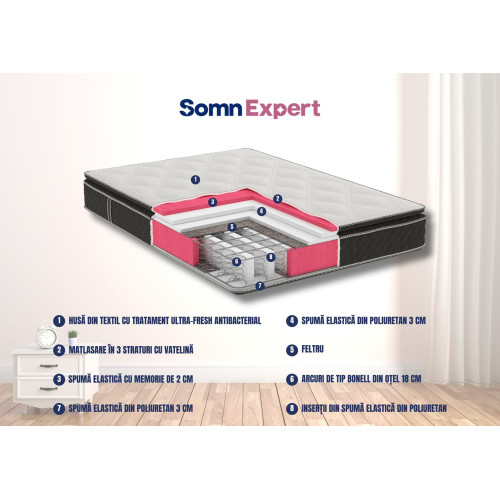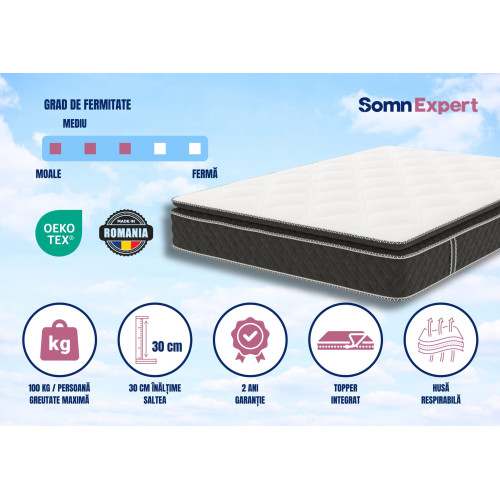 Saltea Somnexpert Top Confort cu topper integrat, arcuri, poliuretan si memorie, 160x200x30