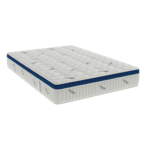 - Laterale din tricot matlasat, cu bandă 3D din poliester albastru de 5 cm pentru ventilare optimă.