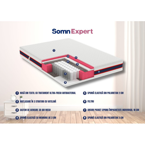 Saltea Somnexpert AirCool HD Pocket Spring 160x200, inaltime 24 cm
