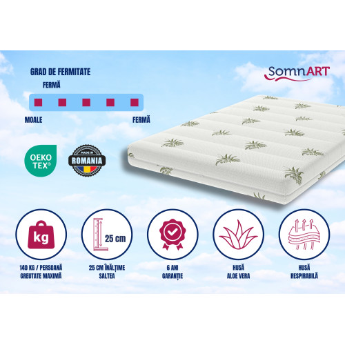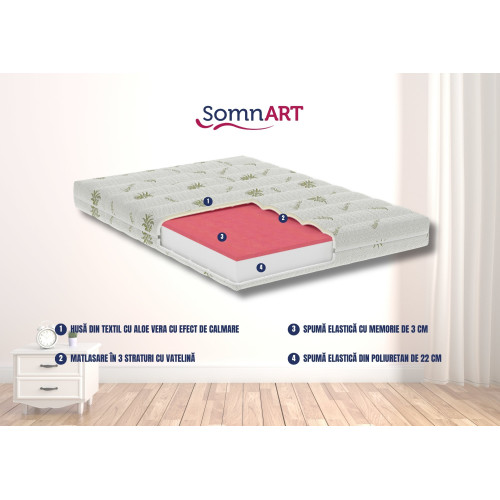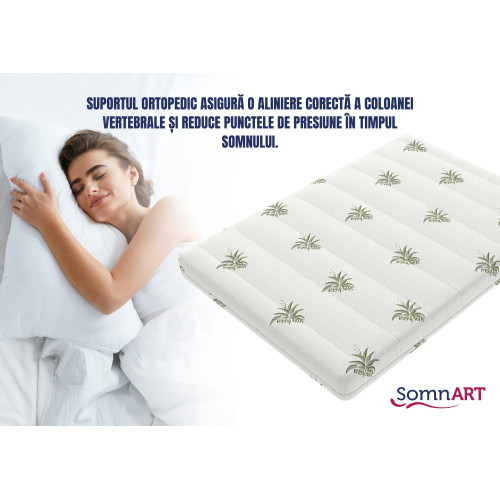 - 3 cm spumă cu memorie densitate 50 kg/m³, duritate 18.