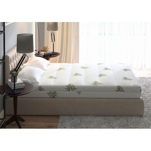 - Husa saltelei este matlasată cu vata 100% poliester, având un strat de polipropilenă pentru confort suplimentar. Modelul Aloe Vera al husei adaugă un plus de proaspătitudine și protecție împotriva alergenilor. Husa este detasabilă și lavabilă la 40° C, ușor de întreținut.