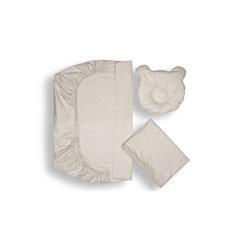 Set lenjerie patut + pernuta formare cap bebelus, Bumbac Egiptean, 60x120 cm, Gri deschis