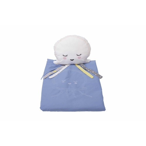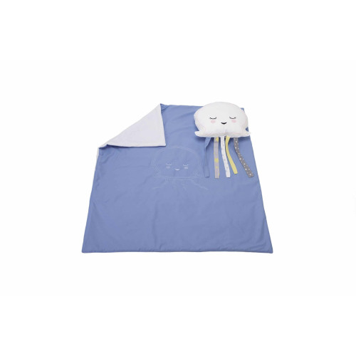 Set paturica 100x110 cm brodata + perna Meduza Albastru