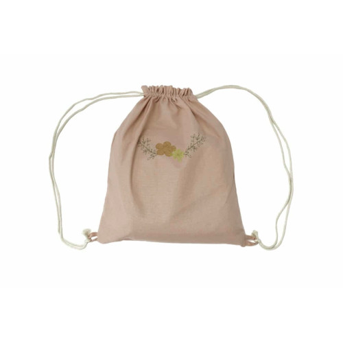 Set paturica + perna + rucsac, cu broderie, din in, crem